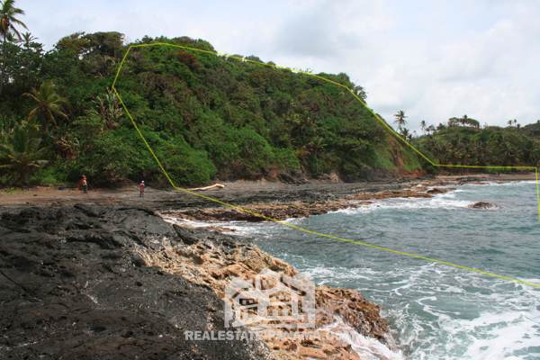 100m2 of beachfront, 107m2 of newly paved asphalt road. The ideal building site sits atop the mountain overlook of the Caribbean ocean with sweeping 270 degree views. Access to municipal water and electricity up to the property.