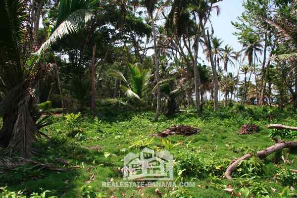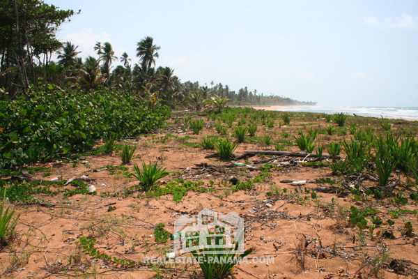 100% direct access to the ocean with yellow sand bordering a brook and river, access to the property via ocean, no municipal water or electricity, perimeter fence, and planted palm trees and other.