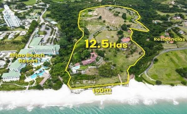 Ideal property for hotel development or a private residential beachfront development on the Pacific coast. This 12.5-hectare property has 150 m of oceanfront. It has an access gate, an internal gravel road, all electricity and underground drainage, and large, well-maintained green areas for private use.