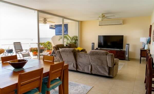 Property Highlights: Spacious 210 m² condominium with large balcony overlooking the sea 4 bedrooms and 3.5 bathrooms, including a maid s room and bathroom Open-concept kitchen and dining room Large living room that connects to the balcony Air conditioning in all areas Laundry area included Building Amenities: Swimming pool and social area for special occasions 24/7 security with administrative staff Parking for owners and guests Ideal for Airbnb or short-term rentals.