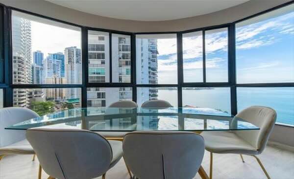 Este condominio con vista al mar ofrece algunas de las mejores vistas de la Ciudad de Panamá. La espaciosa residencia comprende todo el piso 11 del edificio Regent en Paitilla. La casa fue completamente remodelada en 2021. Tres de las habitaciones y lo que llamamos el “sky bar” tienen vista al mar verdaderamente icónica de la costa de la Ciudad de Panamá. Es difícil exagerar lo impresionantes que son las vistas de 180 grados del océano. Extendiéndose hacia el horizonte se encuentran Ocean Reef Island, la Calzada de Amador, la entrada al Canal de Panamá, el Casco Viejo, la Cinta Costera y la Avenida Balboa. Condominio con vista al mar en la ciudad de Panamá The Regent en Paitilla representa el lujo de la vieja escuela en Panamá. Cada piso del edificio de 25 pisos es una residencia individual a la que se accede mediante un ascensor privado. The Regent se encuentra en una calle sin salida privada sin tráfico. El edificio cuenta con seguridad 24/7. Dos ascensores principales y un ascensor de servicio se abren al vestíbulo de ascensores privado de cada residencia. La basura se recoge dos veces al día y hay un servicio de conserjería para ayudarle con sus maletas. El edificio cuenta con suministro de energía y agua de respaldo. Una familia numerosa puede vivir fácilmente en esta cómoda casa con mucho espacio para espacio personal. Tres de las cinco habitaciones cuentan con baños privados y vestidores grandes.