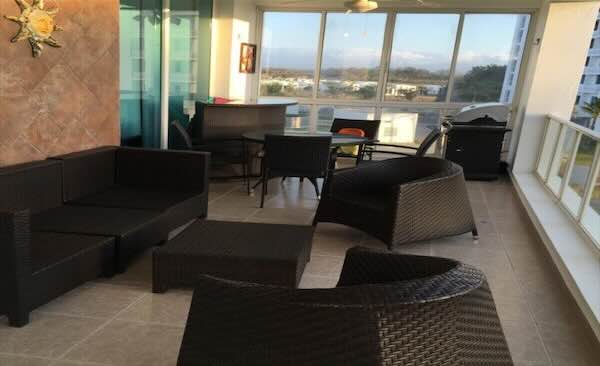 Se vende cómodo apartamento amueblado, llave en mano ubicado en planta baja en Ph Brisas de Farallon, Playa Blanca, Rio Hato, Antón, Coclé. Este apartamento bien mantenido ofrece espacios habitables prácticos y forma parte de un complejo con diversas comodidades. Al entrar, encontrará una sala de estar y un comedor combinados, que conducen a un balcón cerrado con ventanales del piso al techo, desde donde se puede ver la puesta de sol. El apartamento cuenta con un espacio de cocina funcional. Con tres dormitorios y dos baños y medio, este apartamento ofrece flexibilidad para familias o individuos. El dormitorio principal incluye un baño privado en suite, mientras que los otros dos dormitorios se pueden adaptar para alojamiento de invitados o uso personal. Convenientemente, el apartamento cuenta con dos espacios de estacionamiento exclusivos. Ph Brisas de Farallón ofrece acceso a opciones de transporte tanto colectivo como selectivo. Además, el complejo cuenta con un espacio de lobby y servicio de seguridad 24/7, con espacios de estacionamiento para visitas disponibles. El complejo también brinda servicios de recolección de basura. También encontrará establecimientos minoristas dentro del complejo para su comodidad. El complejo está equipado con tanque de reserva de agua y suministro eléctrico de respaldo para áreas comunes.