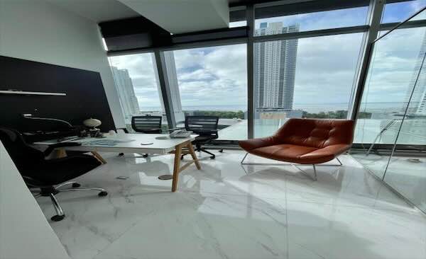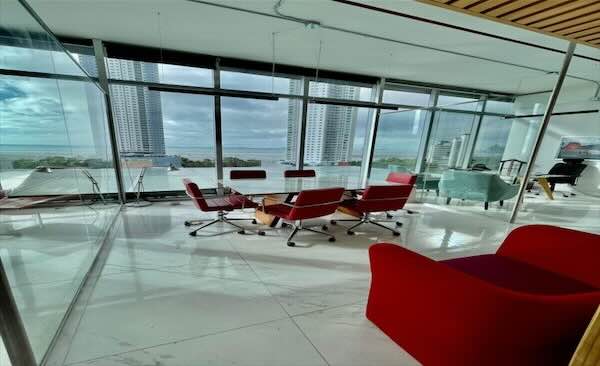 Oficina en plaza PDC Costa del Este con deposito en el piso E5 de 6.7 m2 con mezzanine y doble altura, y un estacionamiento.